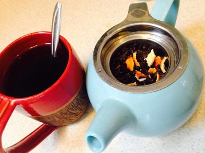 Constant Chai, Use 1 1/2 t. per 8oz. - steep 3-4 minutes, a very favorite of ours, this vibrant blend is a zippy and floral tea for those overcast days that you need a kick. Excellent hot with a splash of cream. Caffeinated.