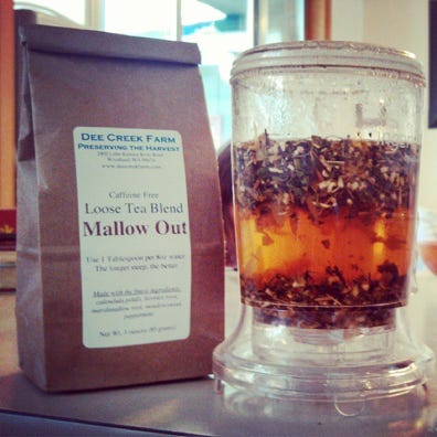 Mallow Out, 3oz - Use 1 T. per 8oz. - longer steep is best, tho' good flavor 3-5 minutes, tastes pepperminty and fresh for the season (I've used this blend to soothe tummy troubles quite efficiently). Naturally sweetened. Caffeine-free.
