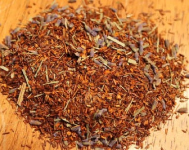 Lavender Rooibos, 3oz, Use 1 T. per 8oz - steep 5-6 minutes for a sweet fragrant drink. Excellent served hot or cold. Caffeine-free.